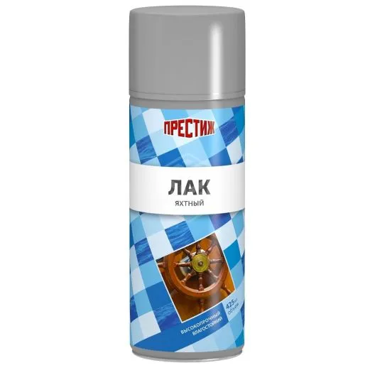 Лак аэрозольный яхтный Престиж, влагостойкий, матовый, 425 мл. представляет собой специальное лакокрасочное средство для защитной и декоративной обработки различных деревянных поверхностей. Вместе с тем изделие может быть использовано в целях лакировки палуб, палубных надстроек, обшитых деревом стен и потолков, дверей, дощатых и паркетных полов, оконных рам, ставен, перил, деталей интерьера, садовой мебели и других поверхностей. После высыхания лак образует прочное декоративное матовое покрытие. Отличительной особенностью аэрозольного лака является удобство его применения в труднодоступных местах. За счёт универсальности состава лака и повышенной атмосферостойкости покрытия, его можно наносить как внутри помещений, так и снаружи. Допускается нанесение на металлические и ранее окрашенные поверхности. Лак позволяет обеспечить эффективную защиту древесины от биологических повреждений, синевы, плесени, грибка, поражений дереворазрушающих насекомых. Перед применением баллон рекомендуется встряхнуть 2-3 минуты так, чтобы отчётливо был слышен стук шариков внутри, а также периодически встряхивать флакон во время нанесения.